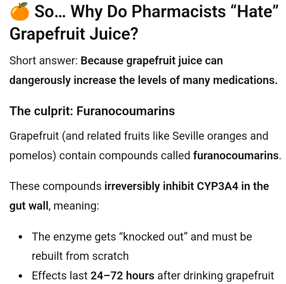 Beware of grapefruit juice if you take a drug metabolized by CYP3A4.